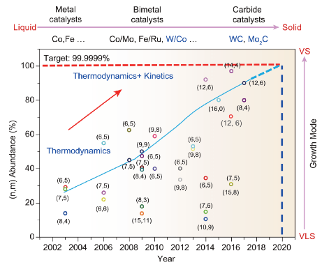 图3 (b)催化剂形态演变对碳纳米管手性控制的影响