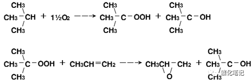 以异丁烷为原料,在110~150℃,2.2~5.6MPa以空气或氧气为氧化剂,异丁烷发生液相非催化氧化反应,生成叔丁基氢过氧化物和叔丁醇。叔丁基氢过氧化物在可溶性环烷酸钼催化剂存在下与过量丙烯在多级环氧化反应器中进行液相反应,生成环氧丙烷和叔丁醇,共氧化反应温度为80~130℃,压力为1.8~7MPa,接触时间0.3~2h。