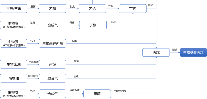 一、生物基聚丙烯的生产方式众多,关键在于生物基丙烯单体制备